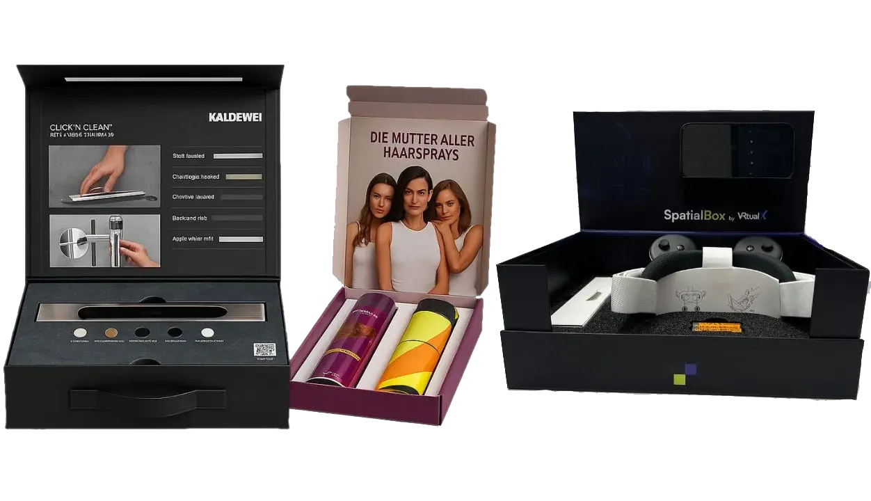 Maßgeschneiderte Präsentationslösungen für Industrie, Marken und Agenturen –von edlen Boxen bis zu funktionalen Musteroffern.