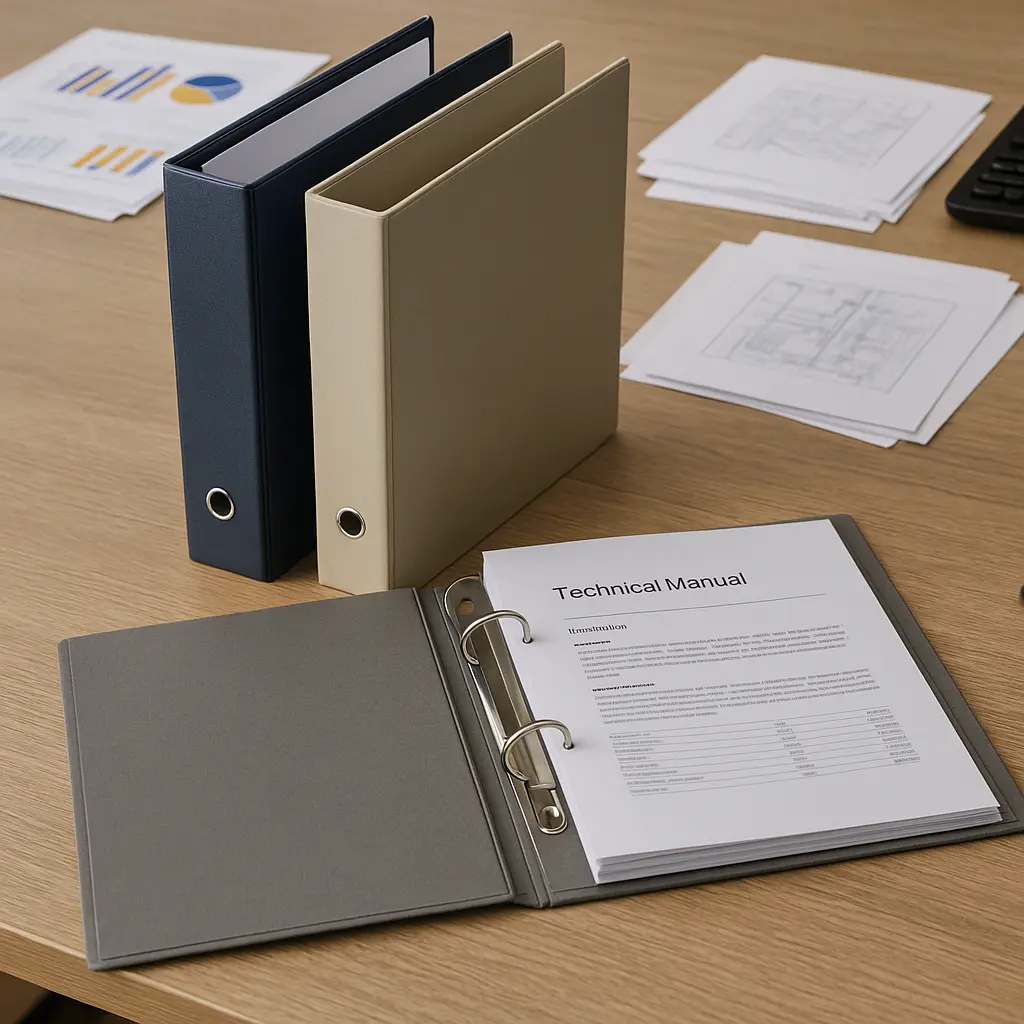 Für Wartungsunterlagen, Projektdaten und Service-Dokumentationen bieten unsere Dokumenten-Ringbücher und Service-Handbücher maximale Übersicht. Register und Klarsichttaschen erleichtern die Struktur; die buchbinderische Verarbeitung garantiert langlebige Qualität – ideal für mobile Einsätze im technischen Umfeld.